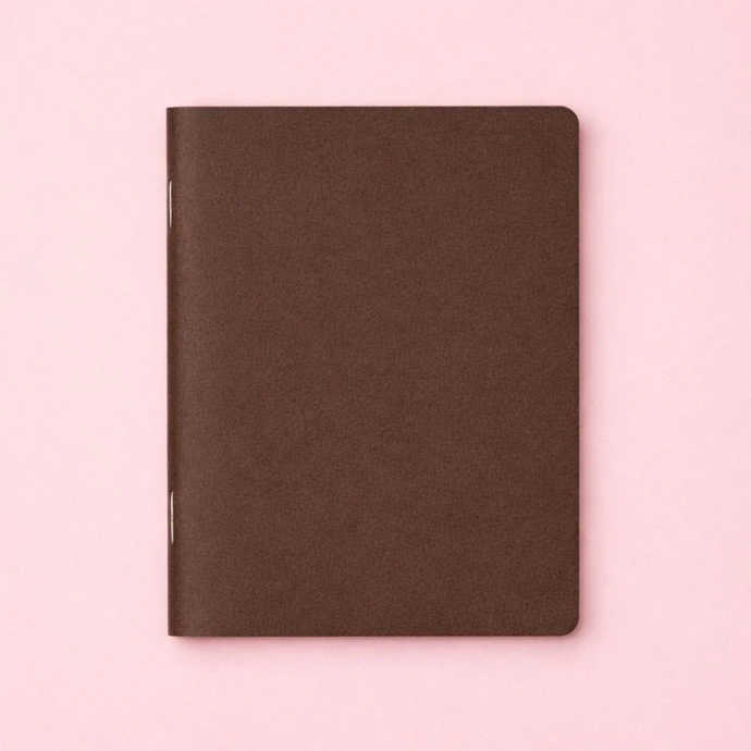A rich brown cover and slim, stapled binding. Designed for writers, artists, and thinkers who love clean, timeless stationery.