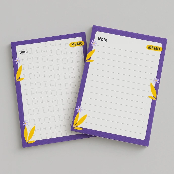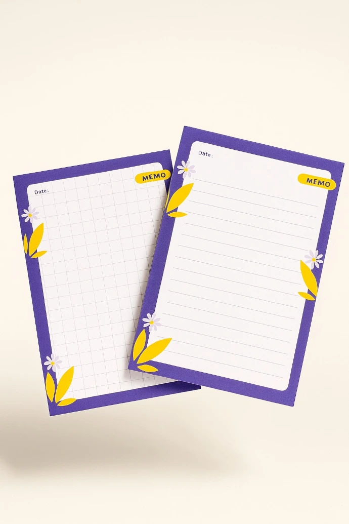 A notepad with a purple floral border and lined memo pages for quick notes, reminders, and daily planning, practical for everyday use.